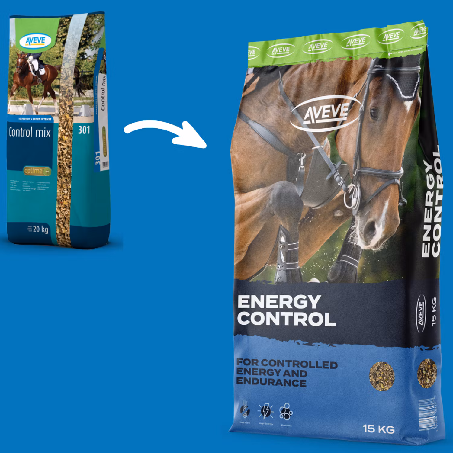Energy Control är havrefritt och därför det ideala fodret för hästar som inte bör få havre, men där ryttaren ändå vill säkerställa hög energi, uthållighet och power – både i den dagliga träningen och på tävlingsbanan.